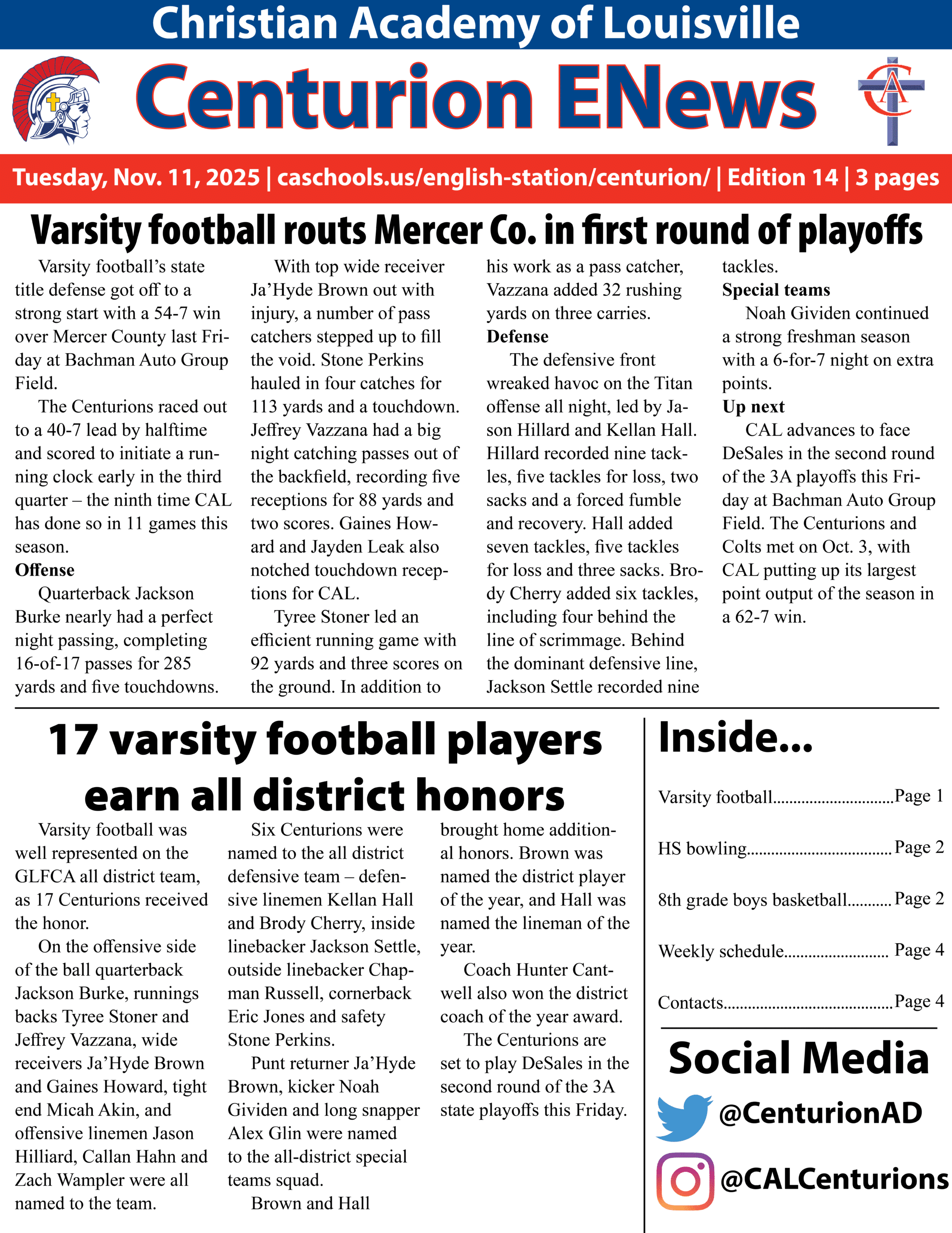 ENews is CAL’s online newsletter that allows fans, parents and supporters of CAL athletics to keep up with the latest news in CAL sports. ENews is distributed weekly and includes sports from elementary, middle and high school.
