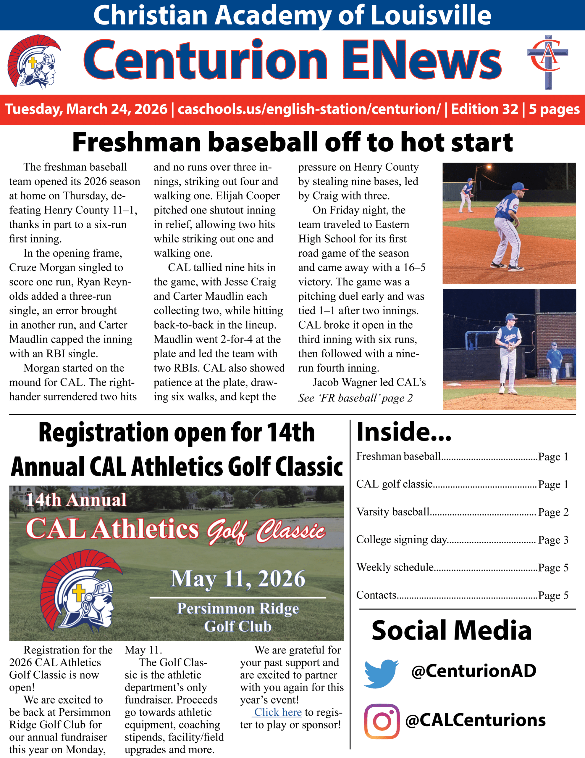 ENews is CAL’s online newsletter that allows fans, parents and supporters of CAL athletics to keep up with the latest news in CAL sports. ENews is distributed weekly and includes sports from elementary, middle and high school.