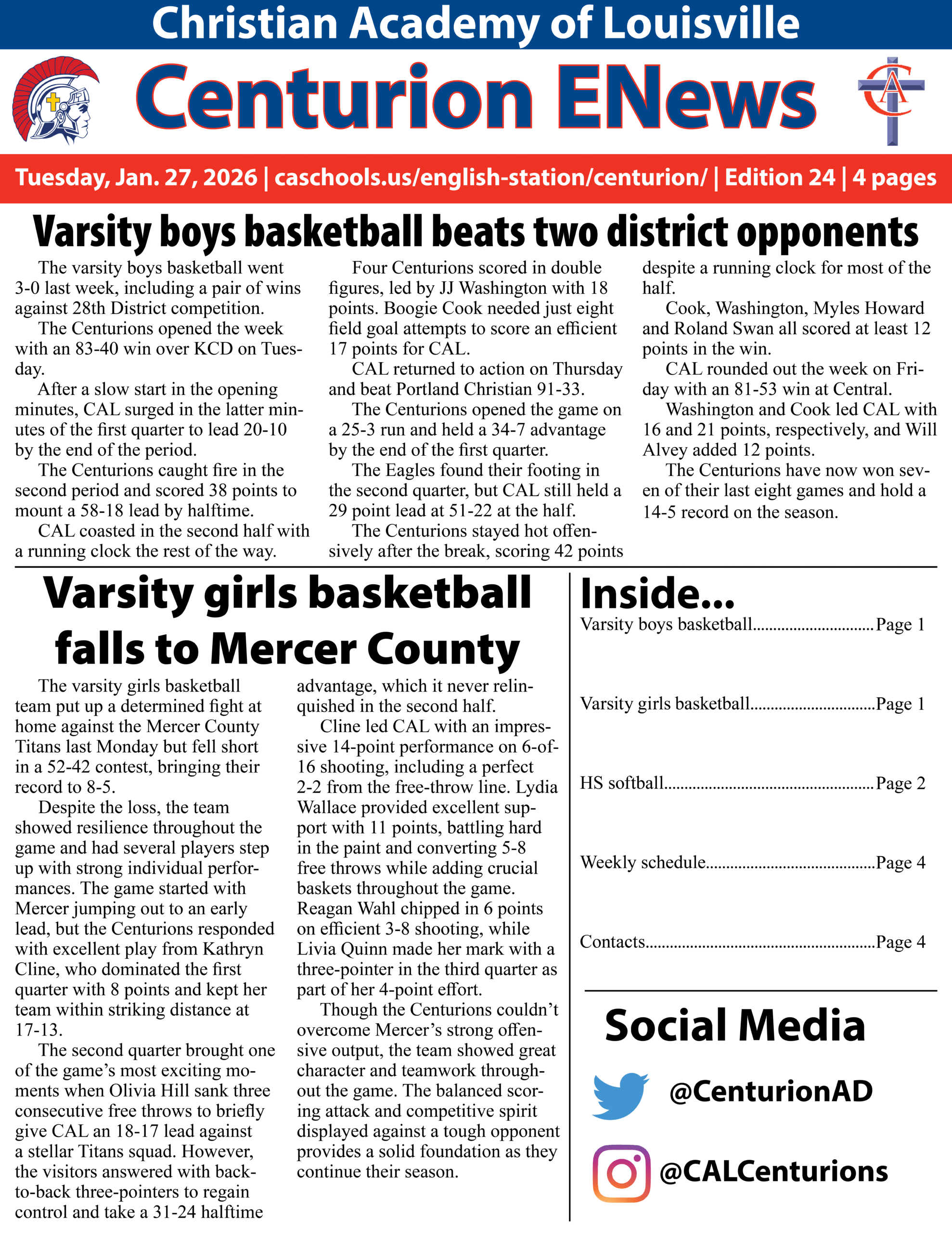 ENews is CAL’s online newsletter that allows fans, parents and supporters of CAL athletics to keep up with the latest news in CAL sports. ENews is distributed weekly and includes sports from elementary, middle and high school.