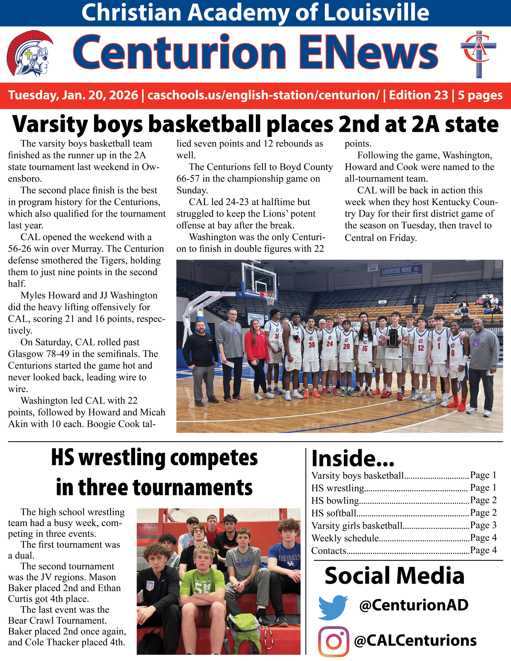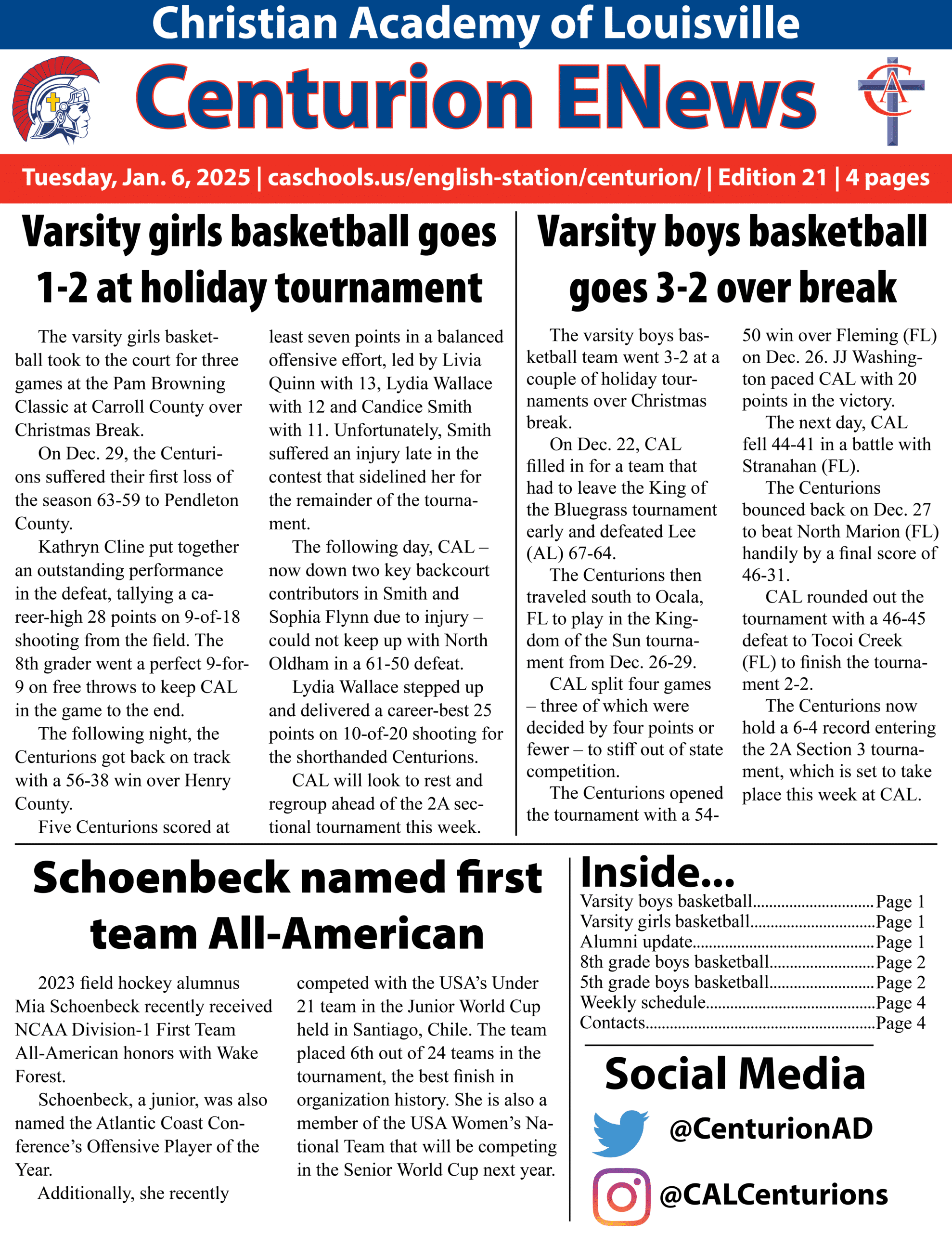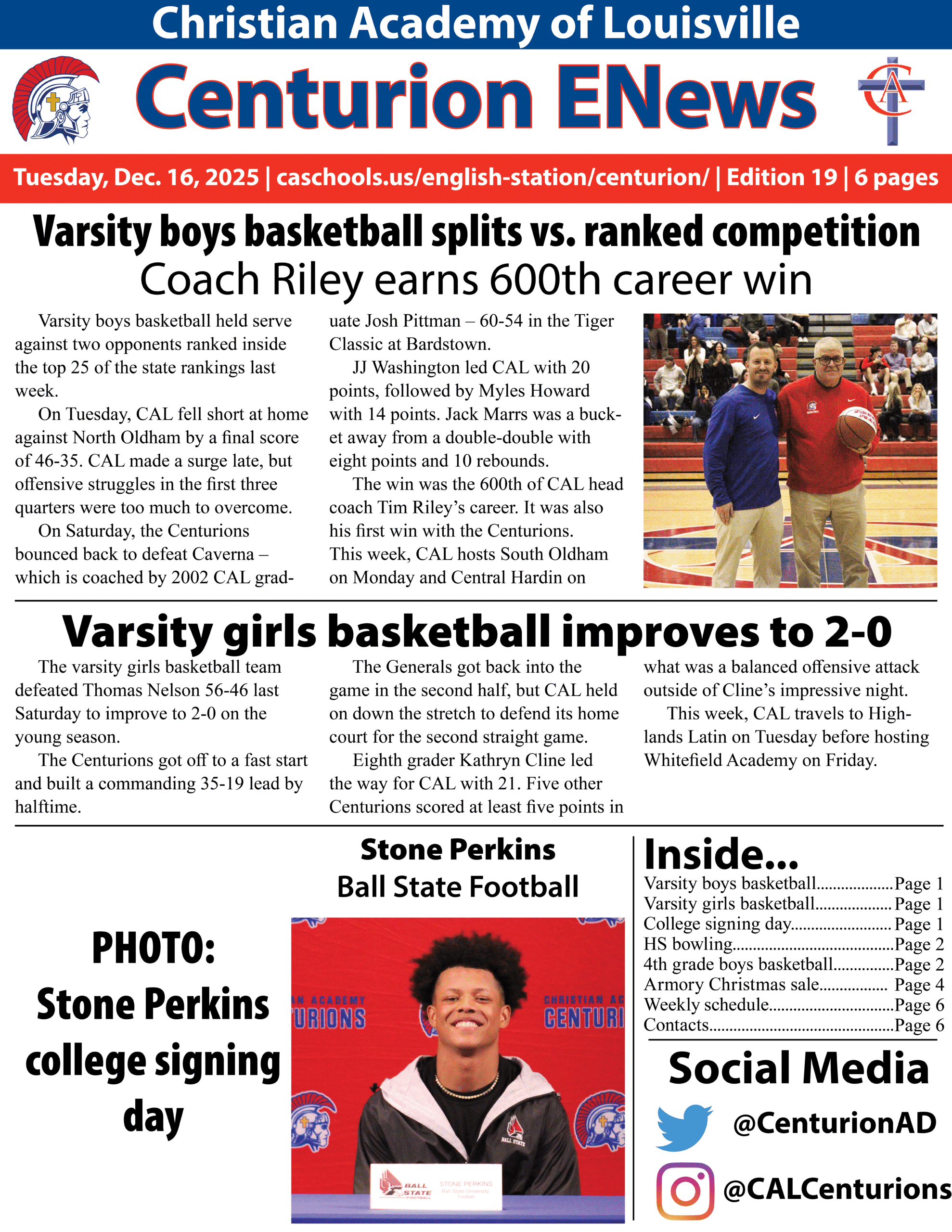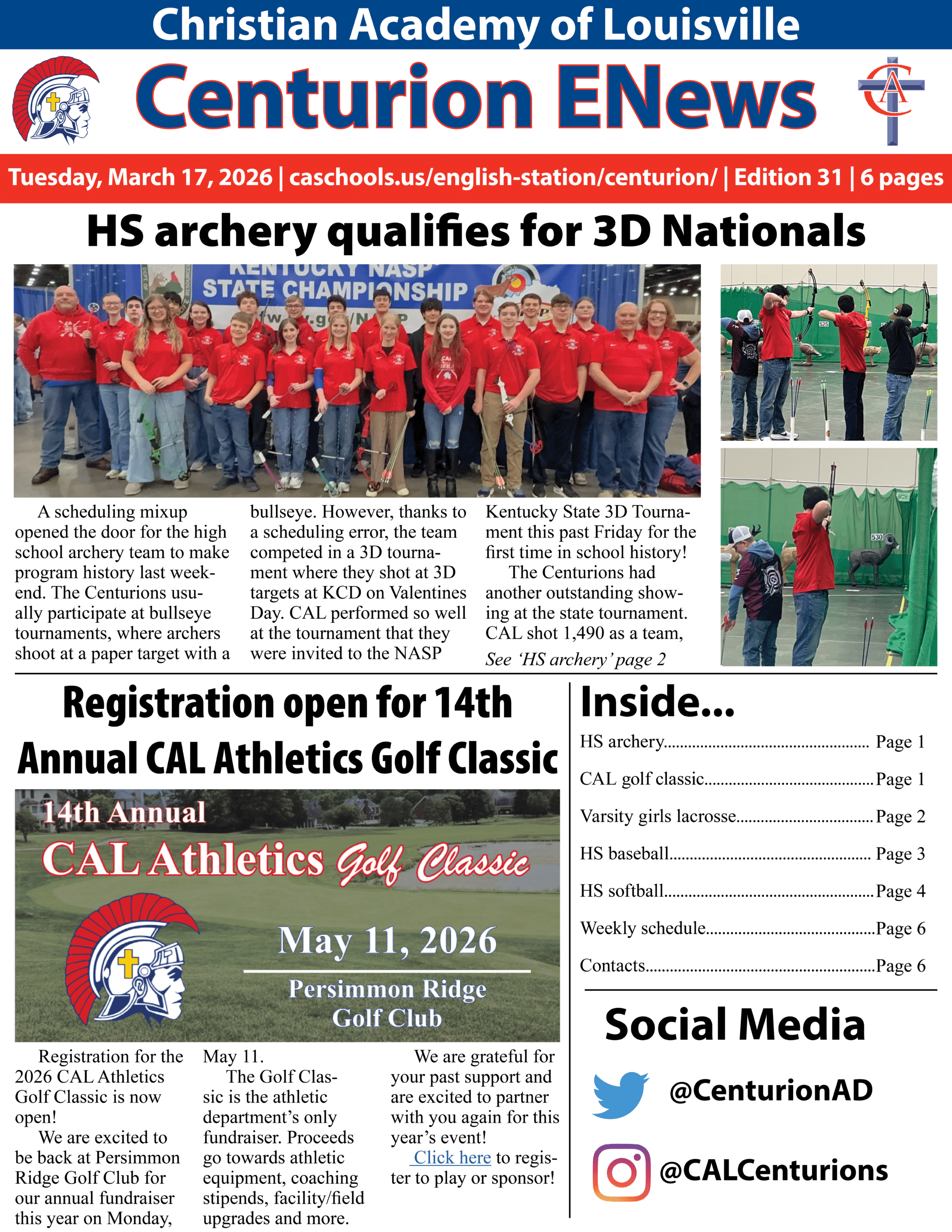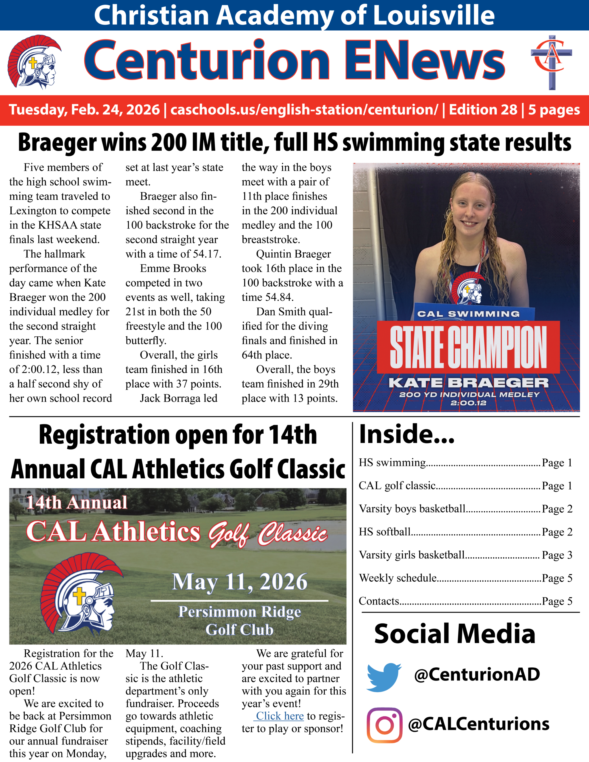 ENews is CAL’s online newsletter that allows fans, parents and supporters of CAL athletics to keep up with the latest news in CAL sports. ENews is distributed weekly and includes sports from elementary, middle and high school.